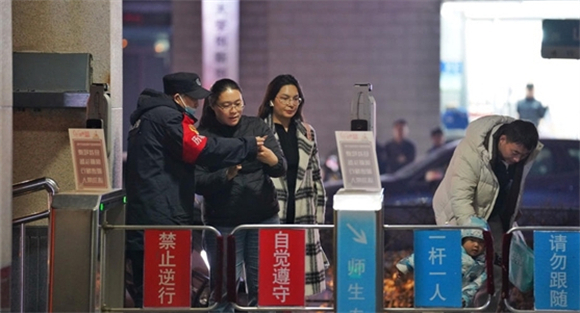 山东大学洪家楼校区,市民出示登记信息后,仅能从南门刷身份证入校;