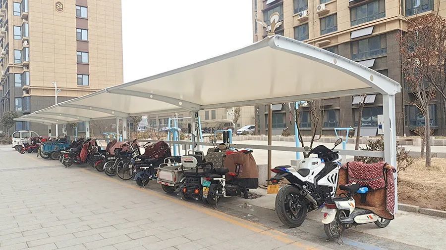 前曹朝阳家苑现分为南北两大片区,共有居民3300余户、1万余人。为了小区居民的人身财产安全,马立岭和前曹朝阳家苑物业公司安全负责人经过调研和业主沟通后,决定投资40余万元,用于改造电动自行车及电动四轮车棚,共1098平方米。