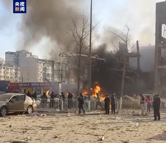 视频画面显示,现场爆炸威力较大,波及面较广,附近建筑玻璃被震碎,路面多辆汽车受损。