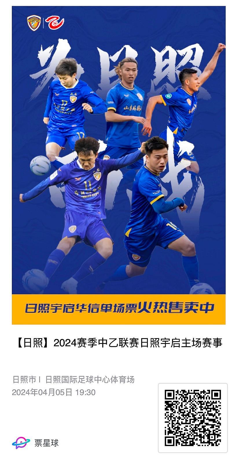 4月5日晚19:30,让我们齐聚日照国际足球中心,为日照宇启华信队新赛季首个主场比赛呐喊助威,共同为日照而战!