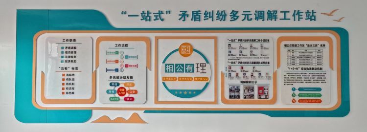 “一站式”矛盾纠纷多元调解工作站成立以来,坚持和发展新时代“枫桥经验”,探索“法理显威严、道理释公正、情理服人心”的“三理”工作法,擦亮“相公有理”调解工作品牌。发挥治理前端优势和“法治三员”作用,建立基础台账,牵头构建网格、热线、信访、公安、司法、执法等6个前沿部门参与的多元解纷“朋友圈”,畅通信息来源,汇聚工作合力。开展普法培训5次,化解陈年信访积案1起,解决重点矛盾纠纷和不满意工单10余起。