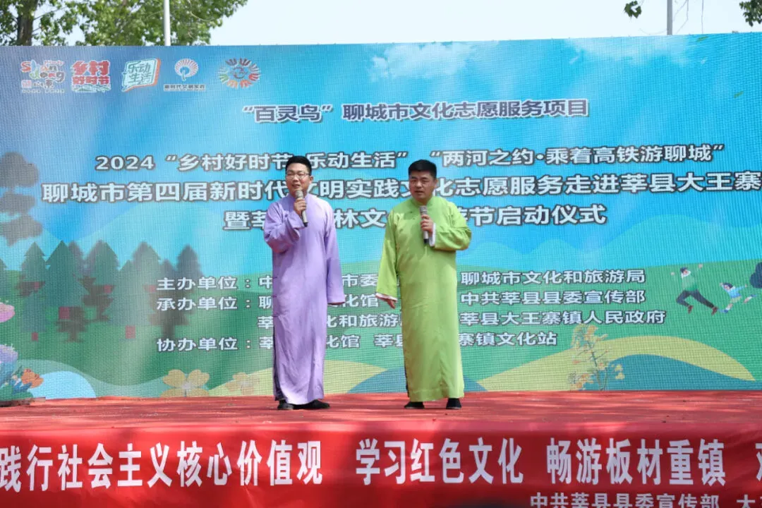 4月12日,为抢抓高铁旅游经济新机遇,探索"高铁+旅游"新模式,打造城市旅游品牌、提升城市旅游品质,推动聊城文旅实现高质量发展。由中共聊城市委宣传部、聊城市文化和旅游局主办,聊城市文化馆、中共莘县县委宣传部、莘县文化和旅游局承办,莘县文化馆协办的“百灵鸟”聊城市文化志愿服务项目“两河之约·乘着高铁游聊城”2024年聊城市第四届新时代文明实践文化志愿服务走进莘县暨大王寨镇第一届油菜花节开幕式启动仪式成功举办。