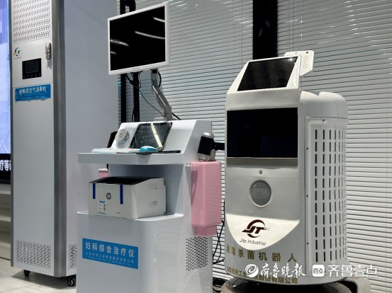 “这一款光触媒铅衣净化烘干机是拥有国家二类消毒器械证书的消毒设备,杀菌率达到99.99%,目前在各级医院得到广泛应用。”山东吉特工业科技股份有限公司葛平军正在向客户介绍产品的特点和优势。
