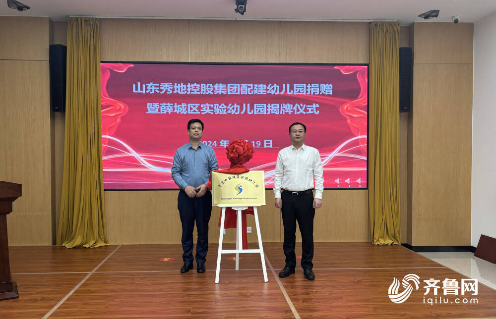 4月19日下午,山东秀地控股集团配建幼儿园捐赠仪式暨薛城区实验幼儿园揭牌仪式举行。