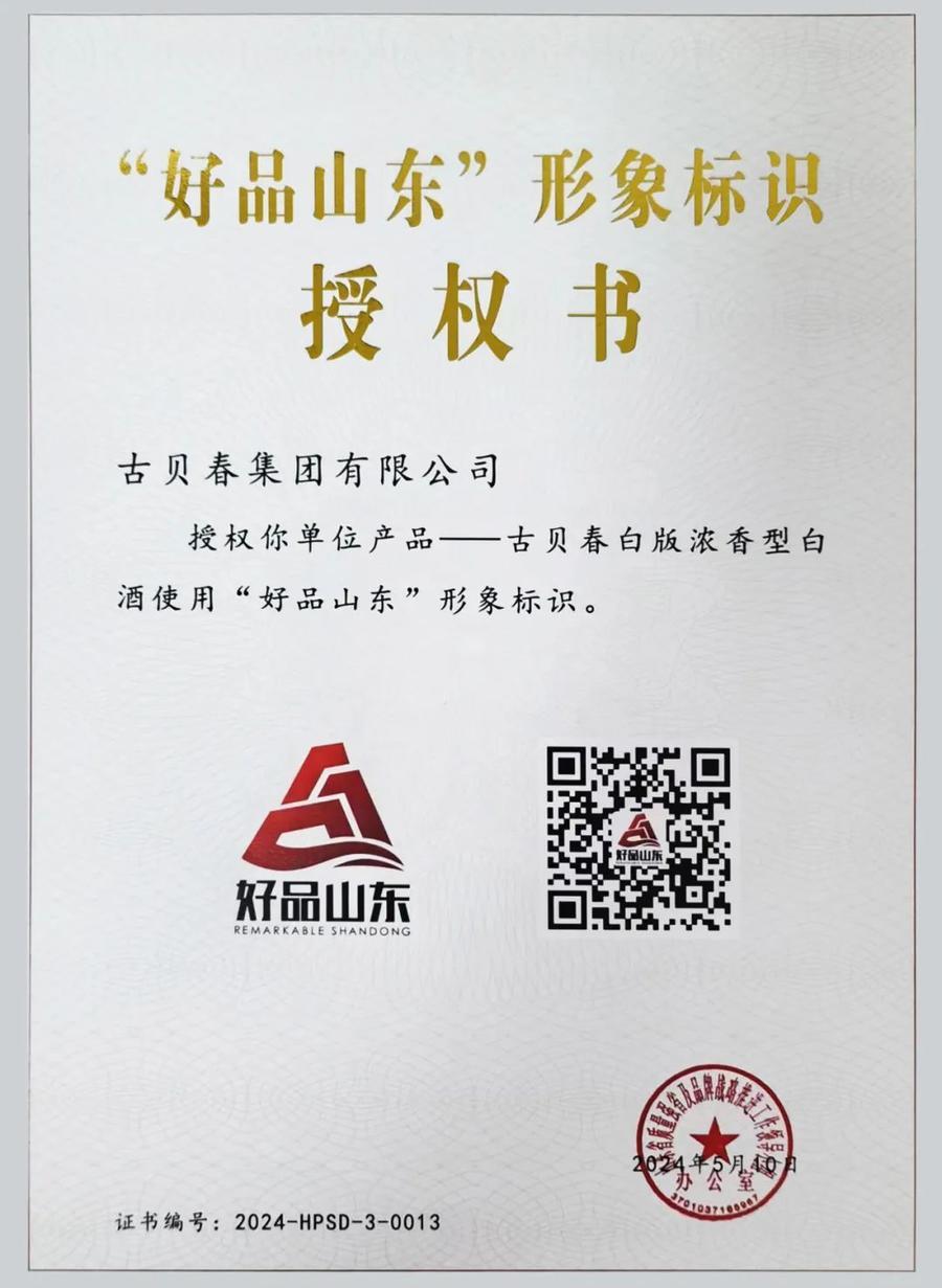 5月10日下午,山东省人民政府新闻办公室在中国品牌日系列活动现场发布第三批“好品山东”品牌名单。古贝春集团·古贝春白版浓香型白酒成功入选第三批“好品山东”品牌。次日,古贝春集团党委副书记、总经理张洪昌代表公司上台领取了授权书。