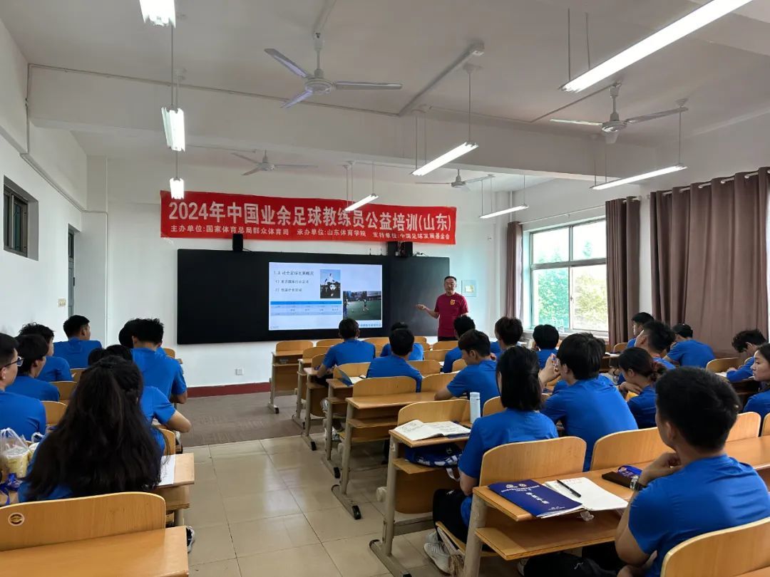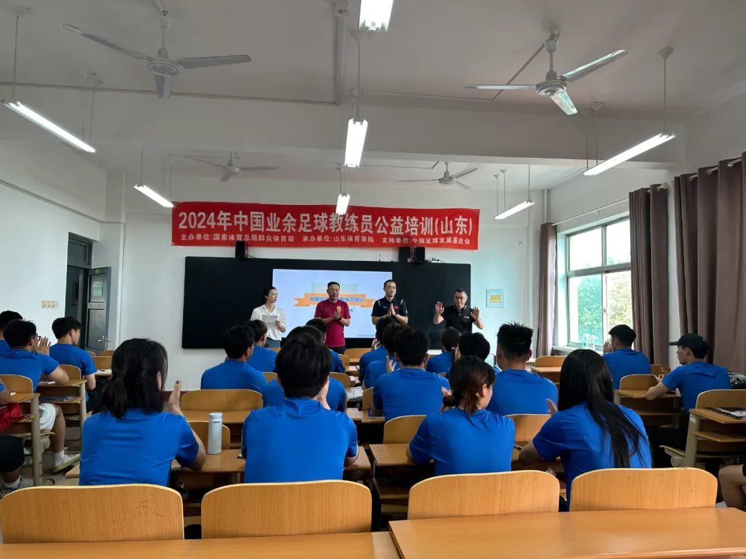 2024年中国业余足球教练员公益培训班(山东)第一期在山东体育学院日照校区圆满收官。本次培训为期两周(5月4日至5月19日),分为线上与线下培训。来自全省35名基层教练、在校学生等足球相关从业人员参加本次培训。