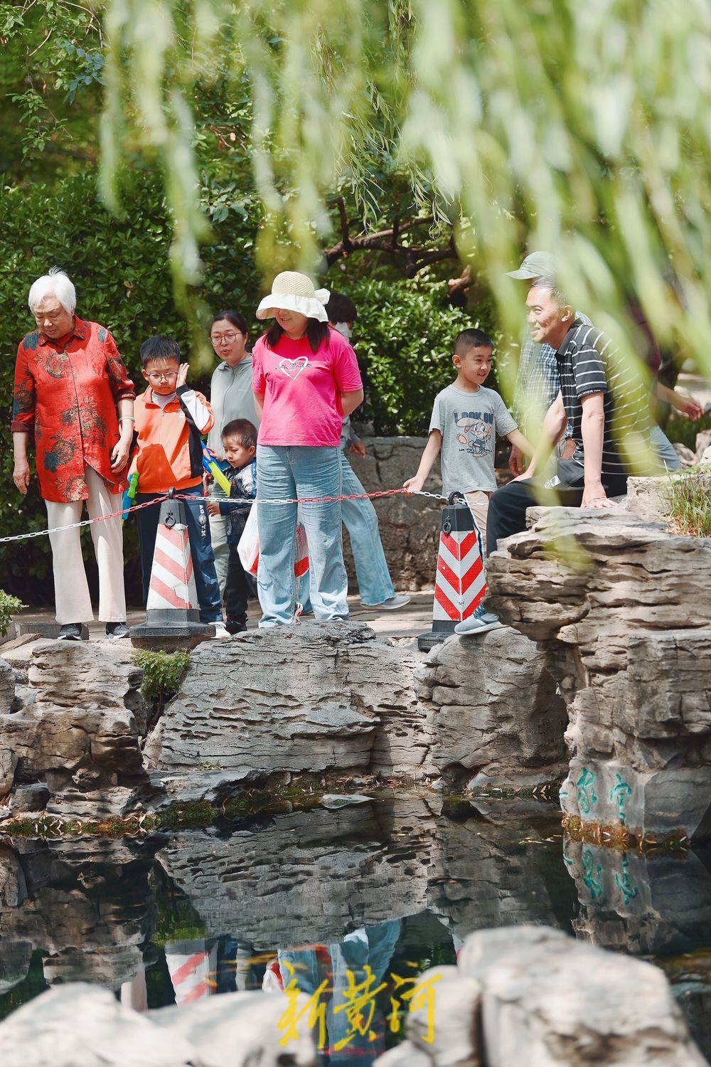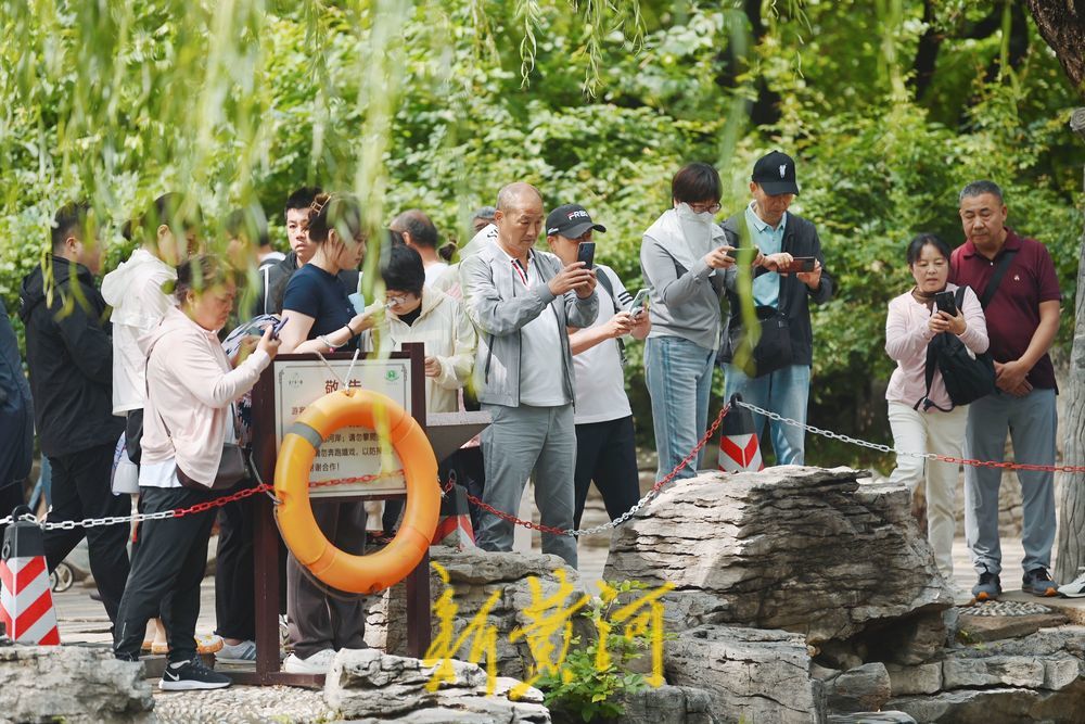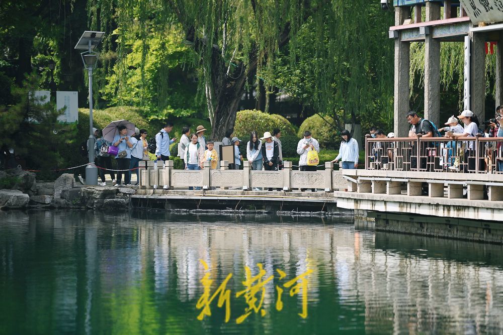 26日,雨后的泉城天气凉爽,市民纷纷来到五龙潭泉畔享受雨后清新的感觉,呼吸带着甜味的新鲜空气,公园内的绿植在雨水的冲刷后显得娇艳欲滴,万物焕发出勃勃生机。