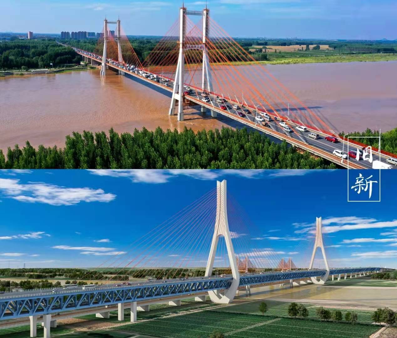 随着城市发展,济南黄河大桥也迎来“旧貌换新颜”。与零点立交“拆旧建新”不同,济南黄河大桥选择“新老并立”。