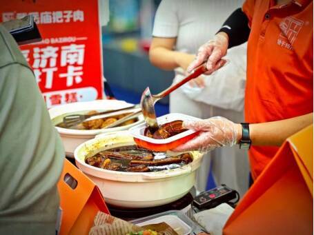 把子肉是本次美食节的主题,在现场我们看到有超过十家摊位带来了各自的把子肉及相关产品,其中不乏老兵把子肉、超意兴等市民熟知的餐饮品牌,现煮的把子肉鲜嫩肥润、滋味丰富,引得游客排队购买,只为一尝那令人无法抵抗的美味体验。