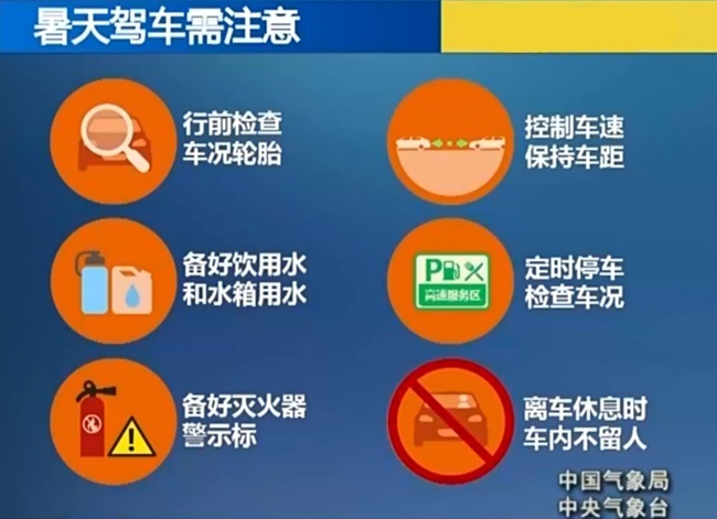 此外,交警提醒广大驾驶员,高温天驾车时注意观察指示灯,水温报警灯是车辆“开锅”的前兆、机油压力故障灯是车辆故障前兆、胎压警示灯是轮胎爆裂前兆。如果发现这3个指示灯亮了,要及时停车检查。