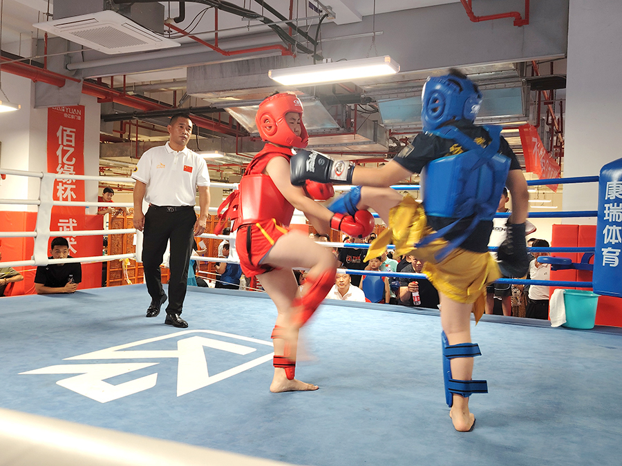 当天上午,简短的开幕式和文体节目表演后,三个比赛场地同时开赛。在聊城市第一实验学校运动训练部体育馆一楼场地,东阿强人搏击的丁亦尘、莘县莘龙拳馆的李志鹏、周公河武馆的范晋瑜等拳击手依次上场,向现场观众展示了散打“远踢近打贴身摔”的精彩搏击技法。现场加油声、欢呼声一浪高过一浪。