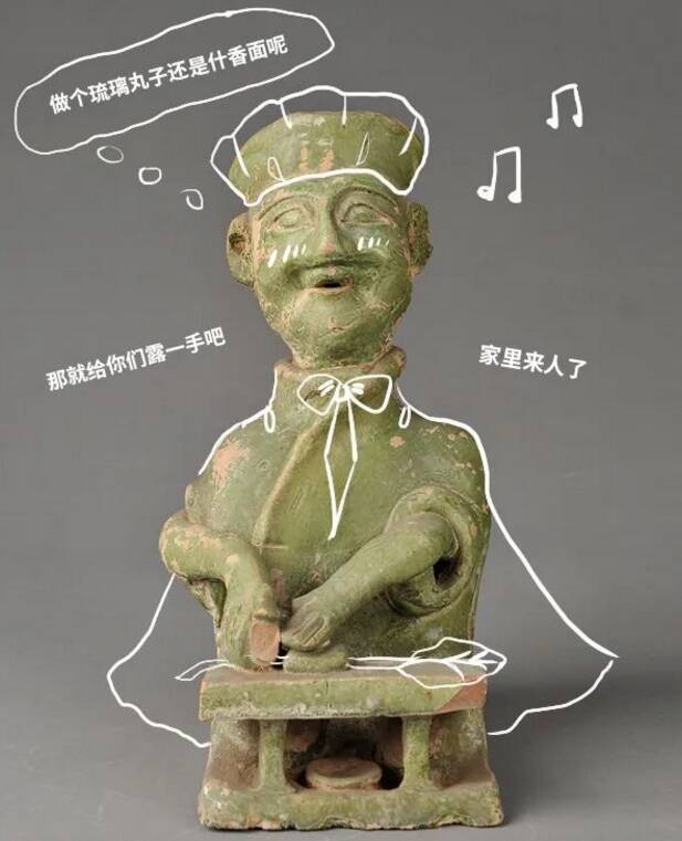 看这挽着袖子切菜的娴熟姿势,是厨师没错了!这个俑在高唐城东固河出土,它表面所施绿釉为低温铅釉,是以铜为主要着色剂,以铅的化合物为助溶剂,在700摄氏度左右的火焰中烧成,从而呈现出翠绿色。悠悠运河水给沿岸带来百年兴盛,融汇了南北风味的美食,同样让人流连忘返,关于“吃”的“显眼宝”肯定少不了。