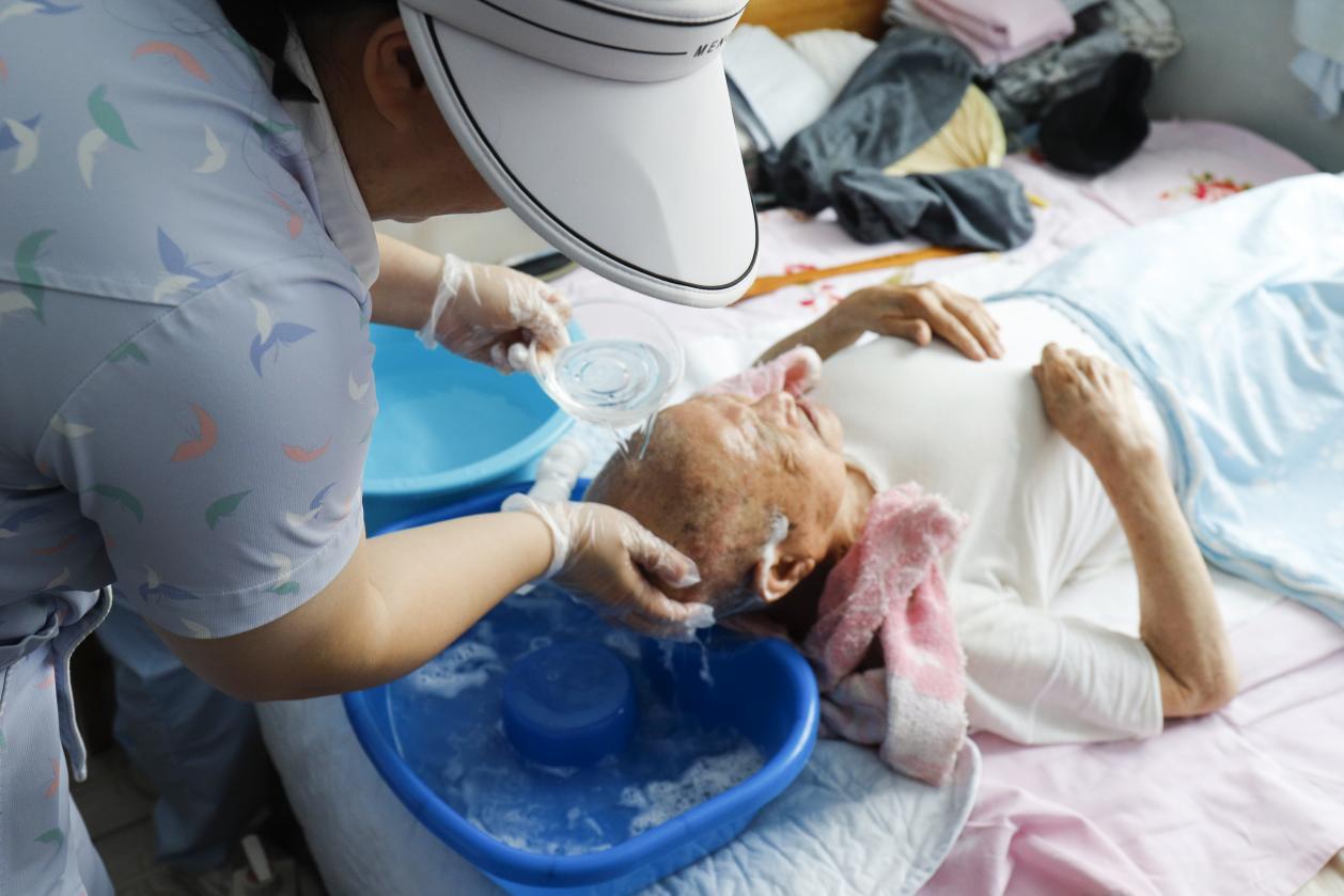 启动仪式结束后,德国蕾娜范烟台颐养院、山东财金健康集团的工作人员开展上门护理服务,并为群众介绍助医流程和就医陪诊情况。“大叔,如果有需要就拨打这个电话,告知我们你的需求,我们会安排工作人员来为您服务。”走访中,工作人员为老人及家属细致地讲解项目内容,并提供生命体征检测、建立健康档案、洗头等服务。