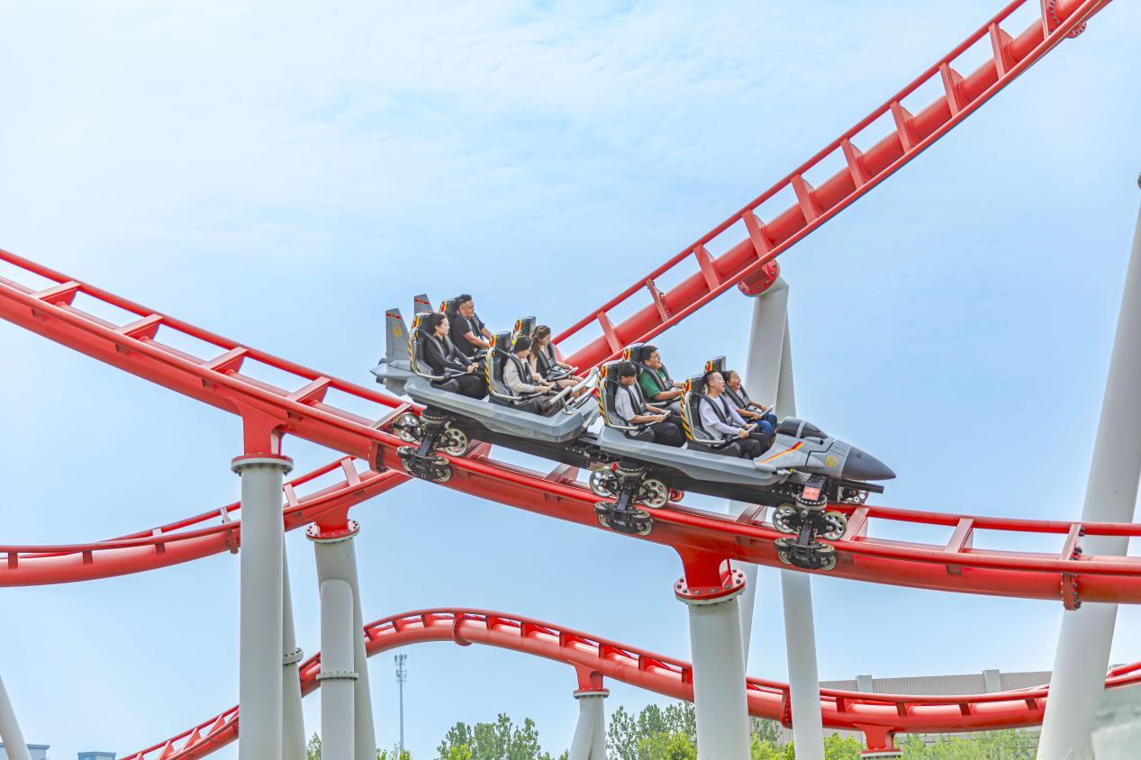 新型弹射式过山车项目《鹰击长空》,最高行驶时速可达92公里,融合了16种前沿过山车设计元素,通过模拟战斗机飞行过程中的高难度弹射、翻腾、扭转等动作,让游客们体验到如“鹰击长空”般的惊险刺激。体验官们随着轨道的高低起伏呼啸而过,在阵阵尖叫声中释放了快乐,让驻足观望的游客们也忍不住跃跃欲试。