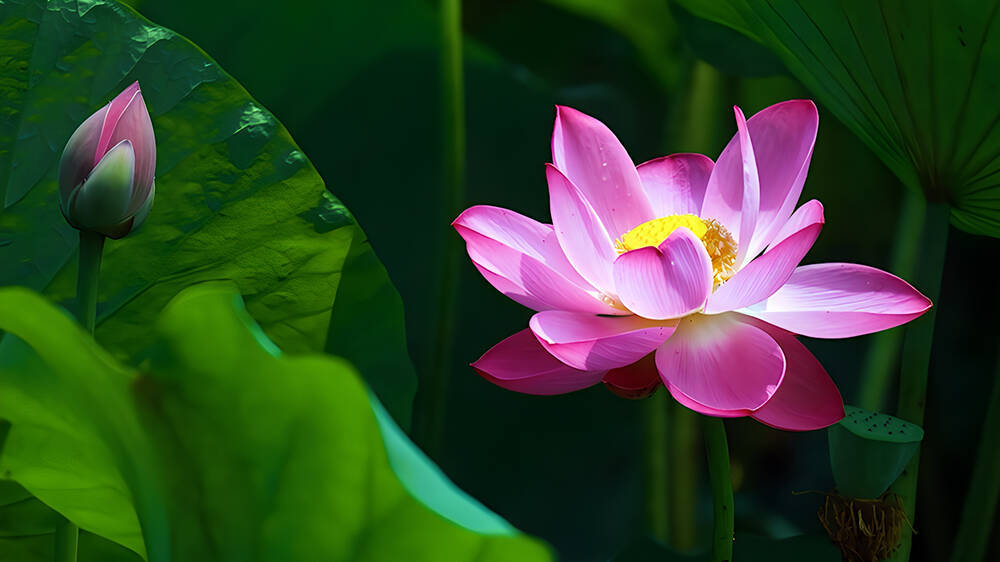 莲叶荷田田,花摇莲叶间。一幅清丽画卷呈现浓浓盛夏之韵。