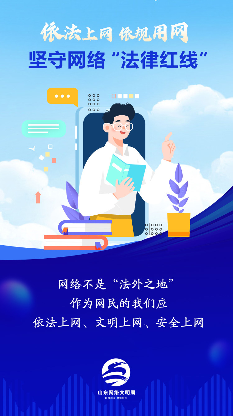 2024山东网络文明周今日启动,网络文明系列主题海报来了!呼吁大家依法上网、自律上网、理性上网、安全上网、健康上网、科学上网,共建网络文明,共享文明网络。