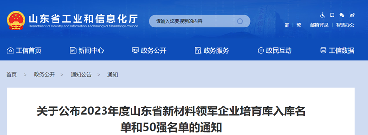 联泓新材料科技股份有限公司、山东天畅环保科技股份有限公司、中材锂膜有限公司、山东恒瑞磁电股份有限公司等16家企业入选2023年度山东省新材料领军企业培育库。