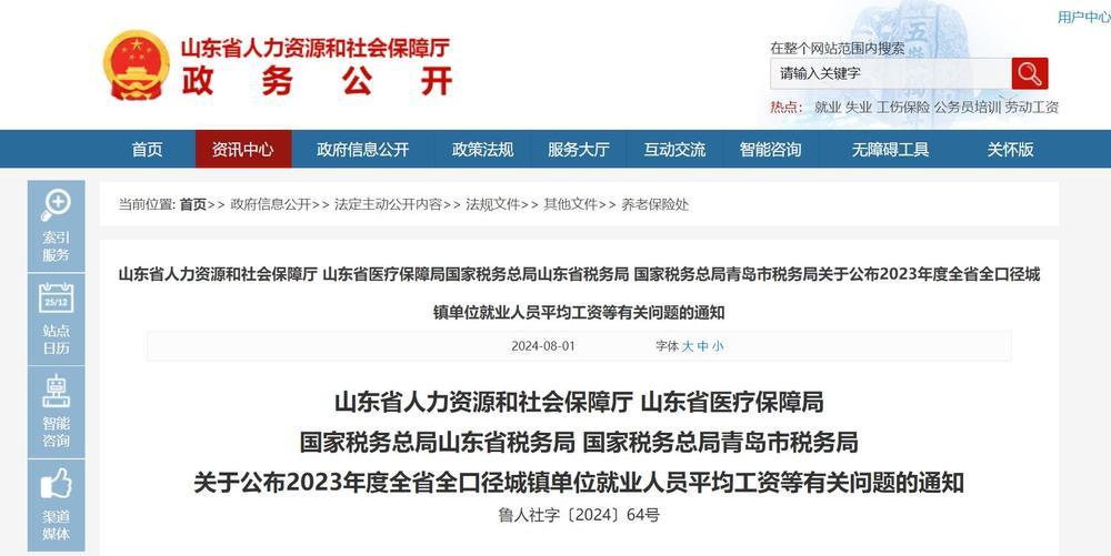 近日,山东省人力资源和社会保障厅、山东省医疗保障局等4部门发布通知,公布2023年度全省全口径城镇单位就业人员平均工资等有关问题。全文如下: