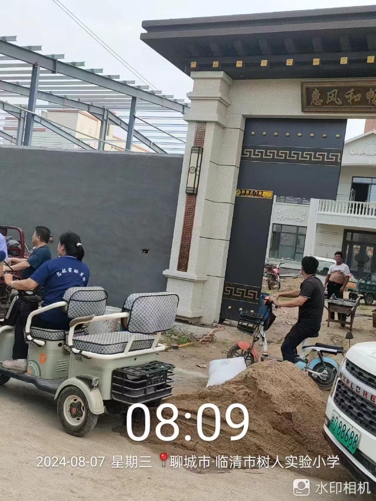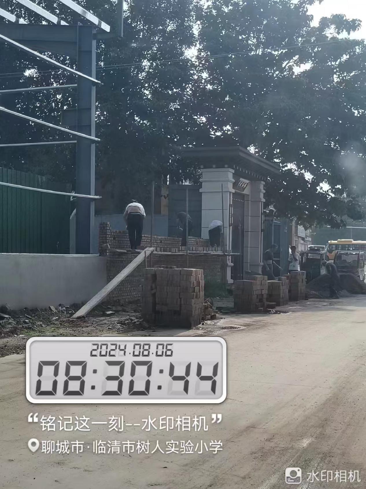但据乔先生反映,以及提供的现场照片来看,8月6日-8日,违建现场新开的南门处于开放状态,工人仍在施工中,且违建工程已进入垒墙、抹水泥阶段,建筑主体已基本完成,院内堆砌着红砖等施工材料,工人正通过独轮手推车运送水泥,过往行人车辆络绎不绝。
