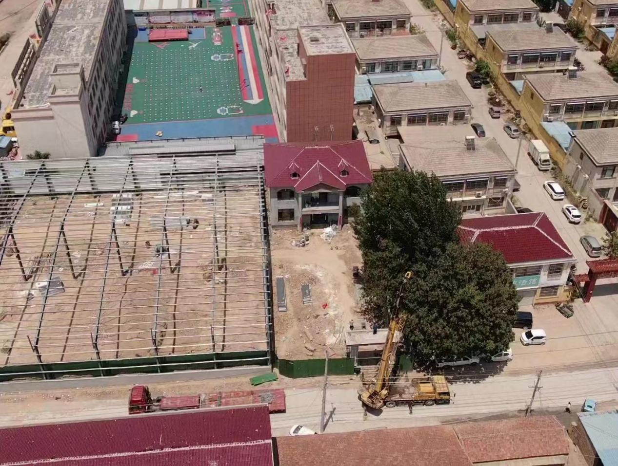凤凰网山东发现,俯视图中1650余平方米的违建仓储车间及两层楼房紧贴树人实验小学,几乎没有间隔空间。而就在7月17日,临清市教育和体育局还转发了山东省教育厅等16部门关于印发《全面加强学校及周边安全管理工作实施方案》的通知,要求切实解决各类突出安全风险隐患,确保学校及周边安全。