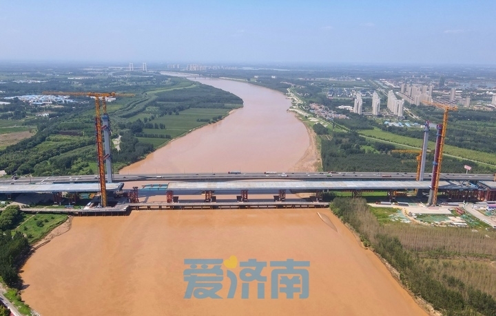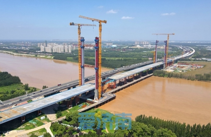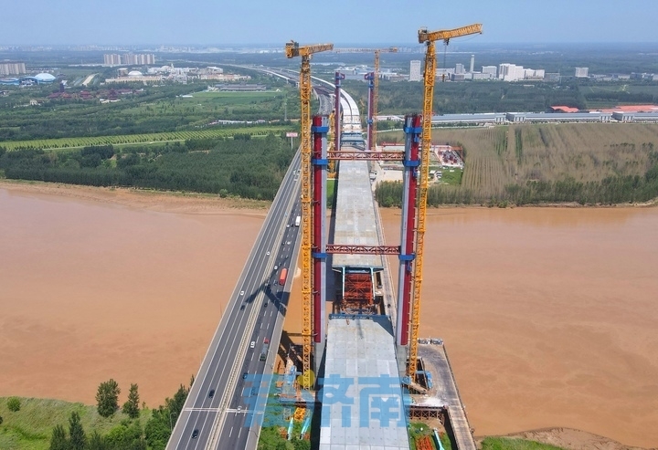8月11日,在京台高速公路齐河至济南段改扩建工程黄河特大桥施工现场,大桥主塔建设及钢箱梁顶推作业有序进行,为下一步高质量推进主桥斜拉索架设施工奠定了坚实基础。