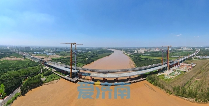 据了解,京台高速公路齐河至济南段改扩建项目是国内首个高速公路改扩建黄河特大桥并桥建设项目,全长23.99公里,为双向十二车道高速公路标准建设。新桥和既有桥梁中间间距60米,主桥为长1080米高低塔双塔、双索面钢箱梁斜拉桥。