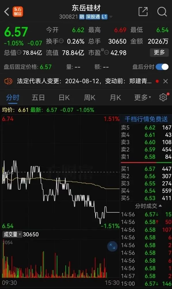 截至8月12日收盘,东岳硅材的总市值为78.84亿元。