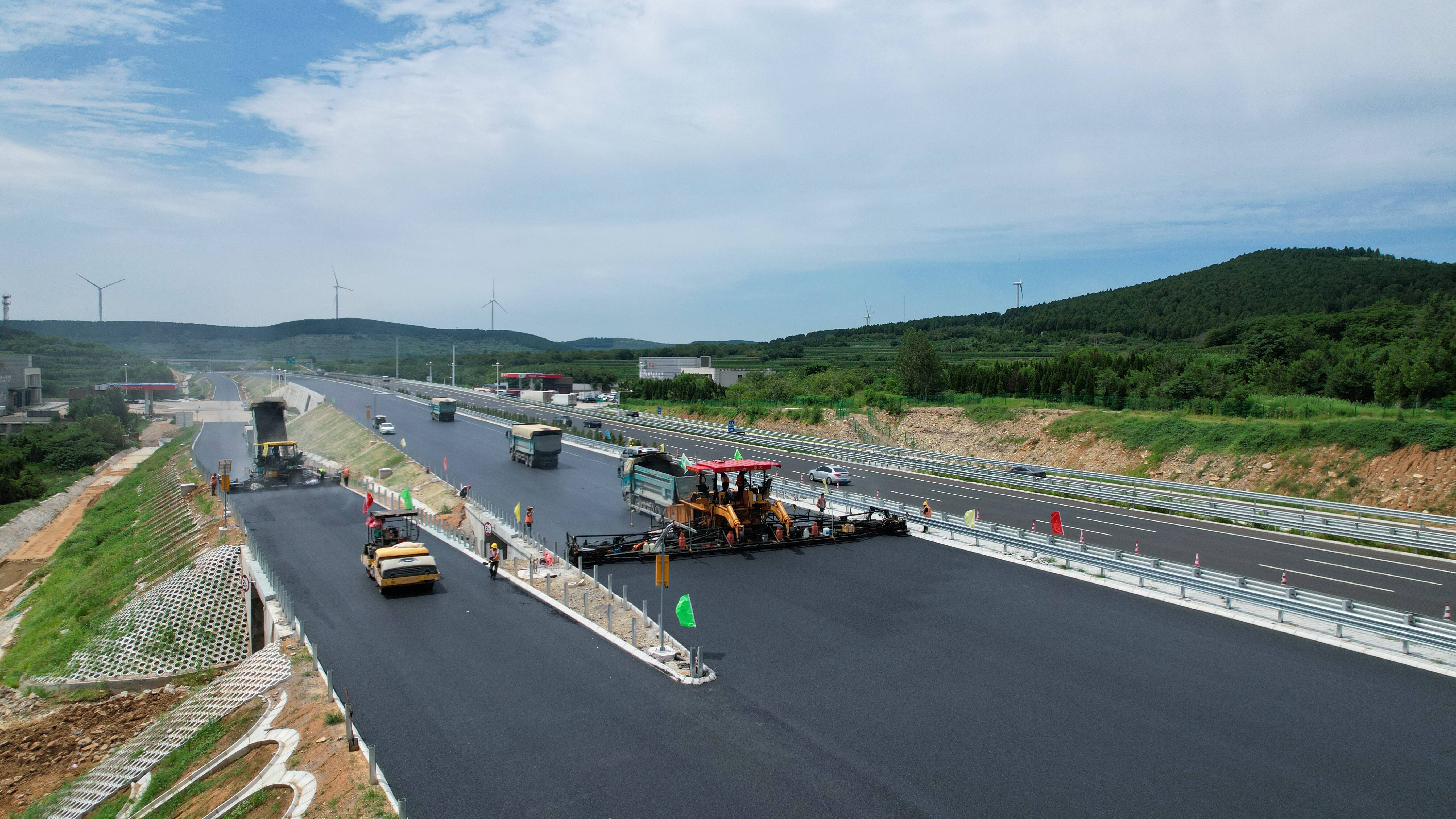 齐鲁网·闪电新闻8月15日讯 近日,济广高速公路济南至菏泽段改扩建工程施工四标段左幅开启大面积上面层沥青摊铺施工,这标志着该项目进入全线左幅上面层大段落、连续施工关键阶段,正式吹响建成通车的“冲锋号”。