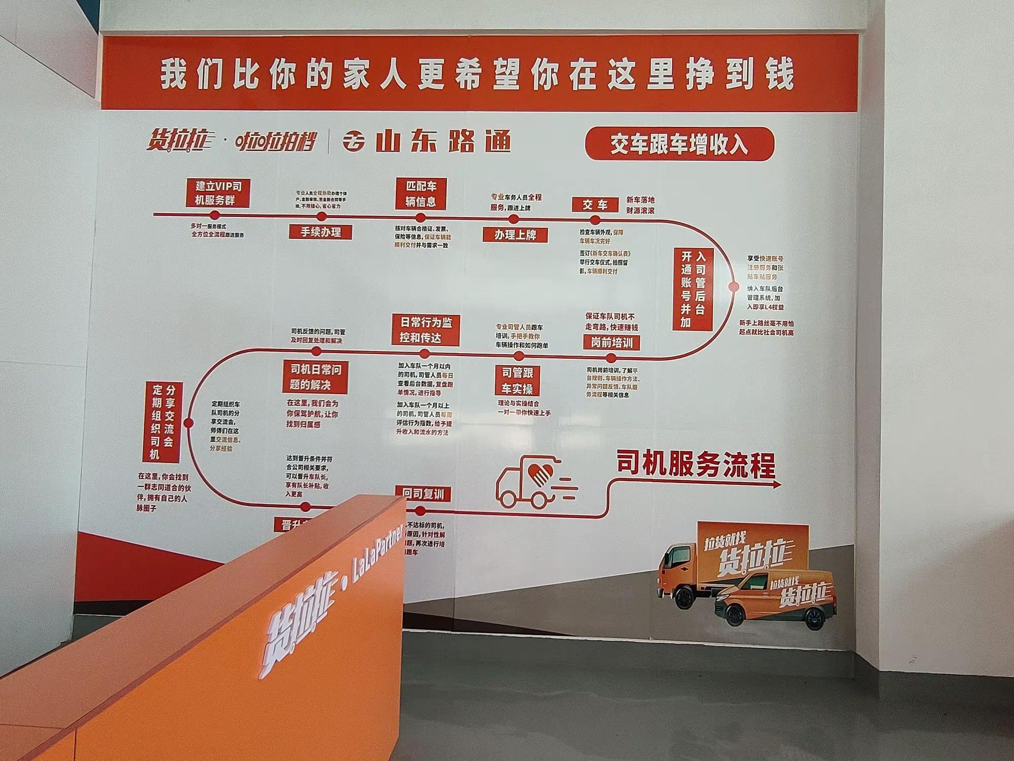 记者了解到,路通天成公司从购车手续办理、挂牌交车到司机培训与管理,都制定了详细规范的服务流程。为确保车队司机少走弯路、快速赚钱,每位司机都将接受专业的岗前培训,详细了解货拉拉平台规则、车辆操作方法、异常问题反馈等相关信息。上车实操阶段,“司管”将一对一跟车指导,手把手教会司机车辆如何操作、如何跑单,还将根据每天的后台数据,帮助司机复盘跑单情况,为其增加收入与流水提供专业化指导。