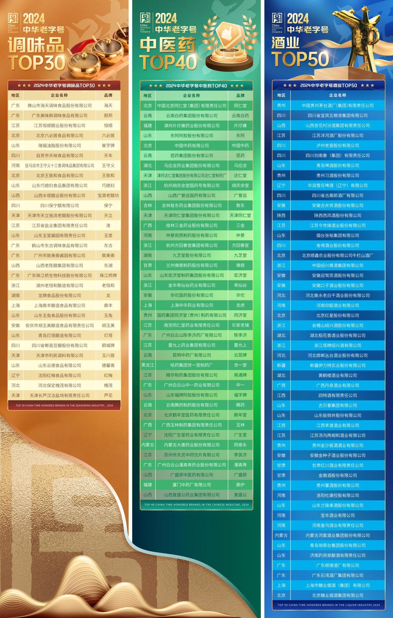 围绕中华老字号企业在各自行业的历史文化底蕴、传承创新情况、行业市场地位等多个维度,博览会期间先后发布中华老字号调味品TOP30、中华老字号中医药TOP40、中华老字号酒业TOP50,彰显老字号在推动行业发展中的杰出贡献,鼓励企业持续强化品牌影响力,推动中华老字号文化的传承与发展。