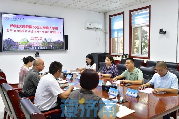 8月24日上午,韩国又石大学副校长兼国际交流院院长辛贤实、国际交流处主管李淑晓以及山东省当代教育研究院执行院长邢坤鹏等一行访问山东科技大学济南校区。校区党委常务副书记梁赛江、管委常务副主任郭加书会见客人,国际交流部相关人员参加会谈。
