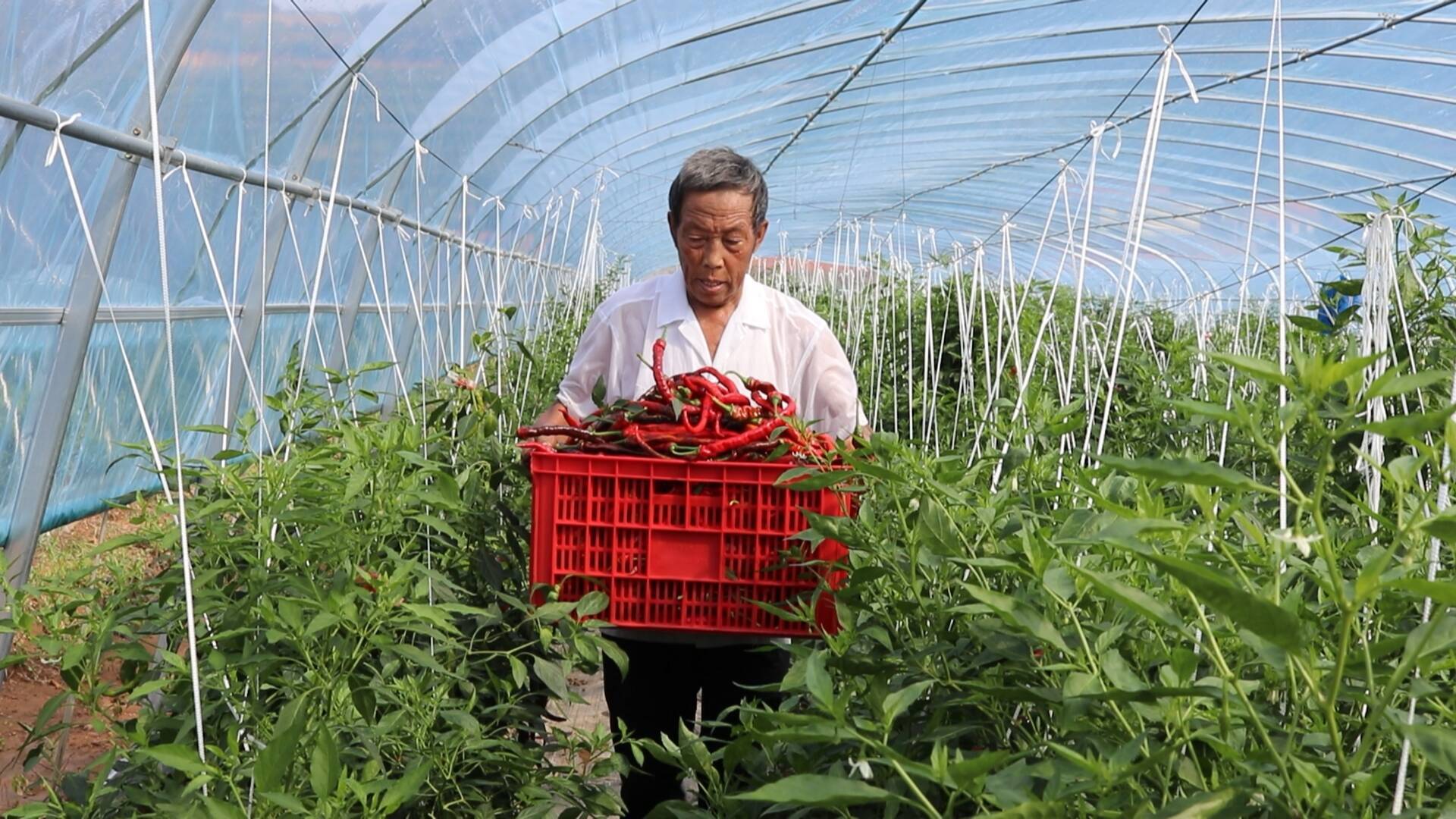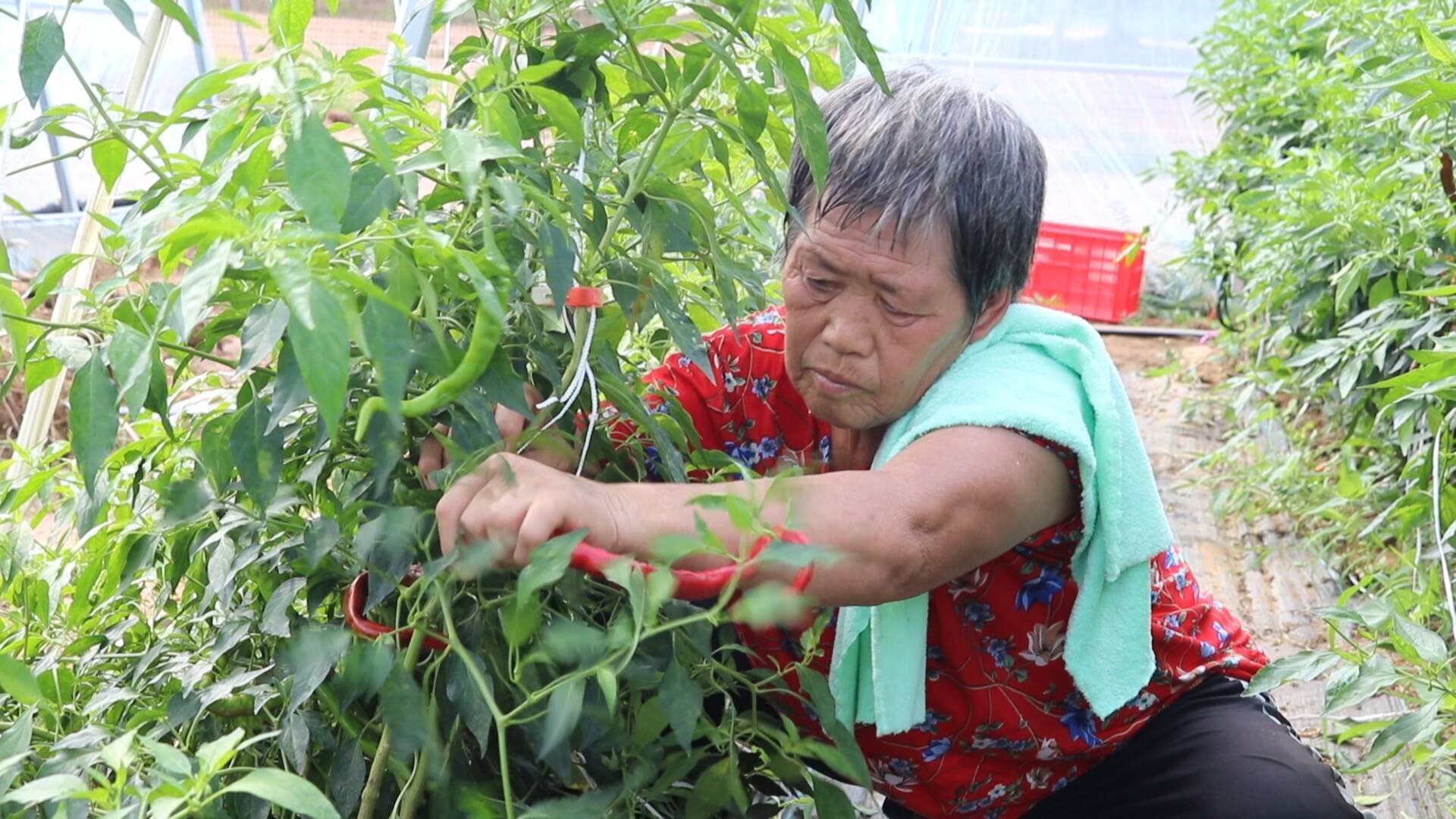 “从立春开始,村里老百姓都积极参与大棚搭建,大棚建设完工以后,我们又开始参与到辣椒种植、管理、收获。总体来说,这个活能干到秋冬。老百姓心里有劲头,干活也都很有积极性。”乳山寨镇石硼崔家村村民崔美粉说道。