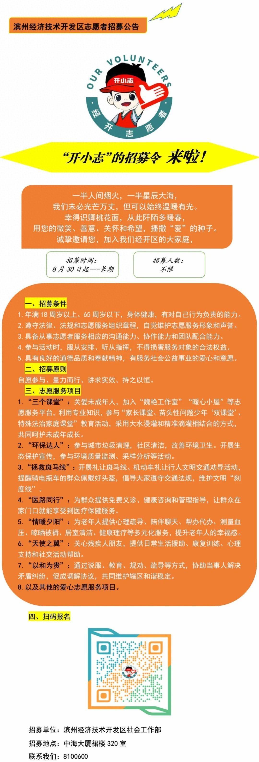滨州经开区志愿者招募 | “开小志”的招募令来啦!赶紧报名吧~