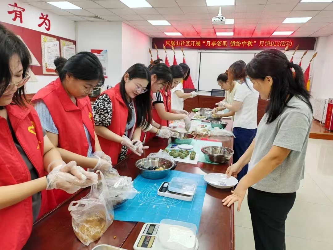 日照岚山区凤凰山社区组织辖区居民开展“‘月’享邻里 ‘饼’纷中秋”月饼DIY活动。岚山区供图
