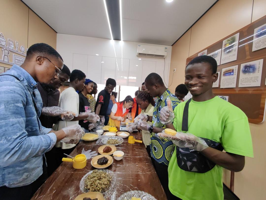 9月12日,13名来自非洲加纳的留学生们来到日照林海社区邻里小院,体验手工制作传统老式月饼。图片来源:闪电新闻