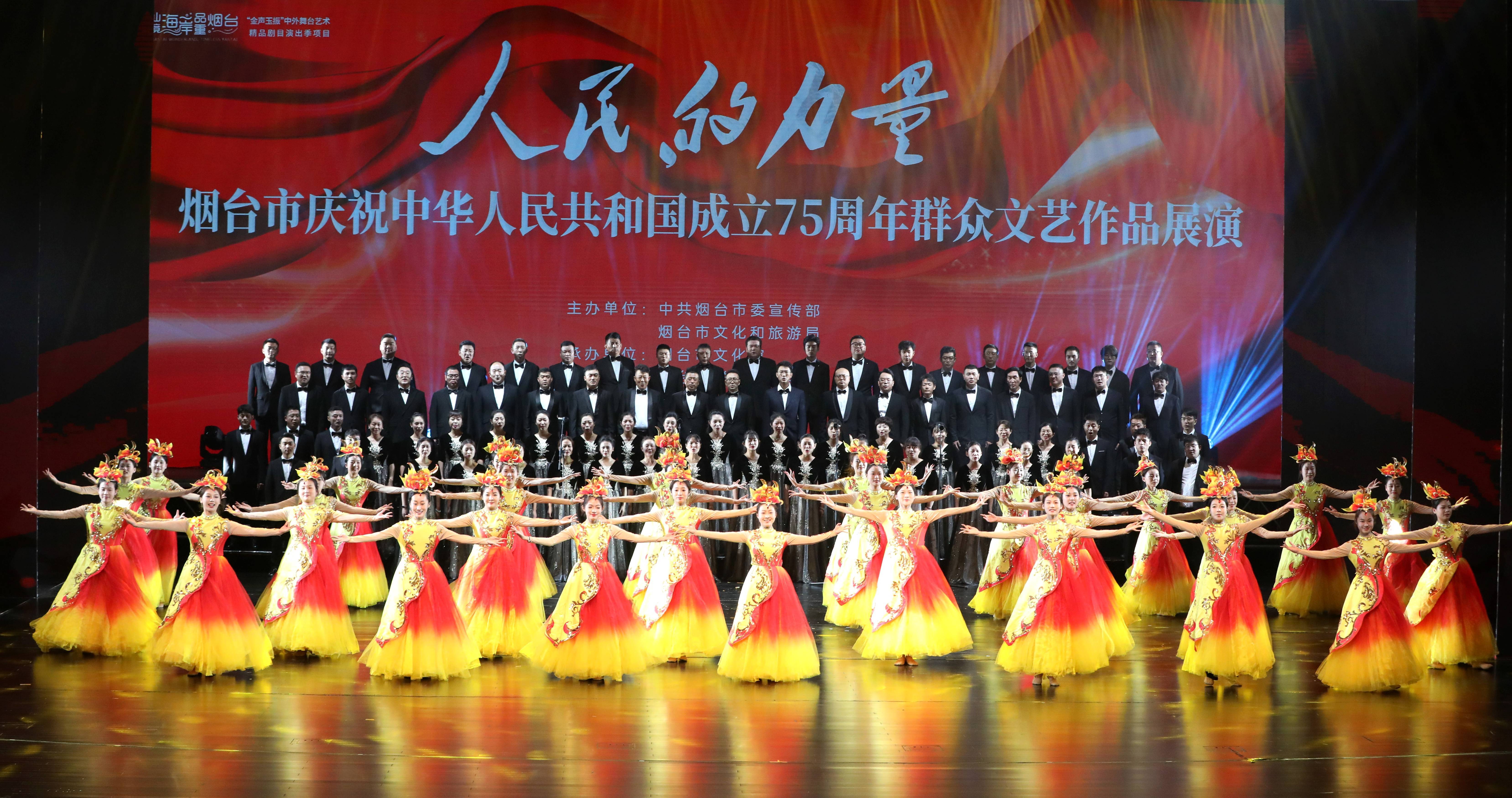9月20日晚,由中共烟台市委宣传部、烟台市文化和旅游局主办,烟台市文化馆、烟台市群众文化学会承办的“人民的力量”烟台市庆祝中华人民共和国成立75周年群众文艺作品展演在烟台大剧院举行,整场演出时长1小时30分钟,1千余名观众亲临现场。