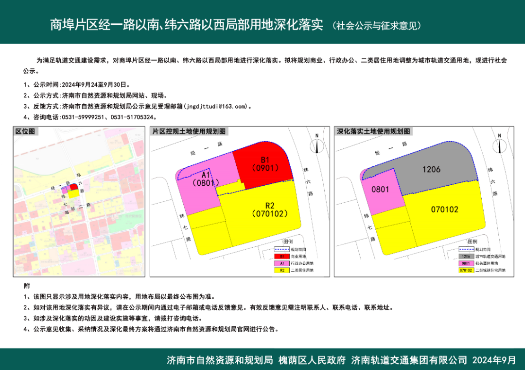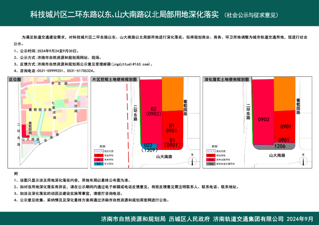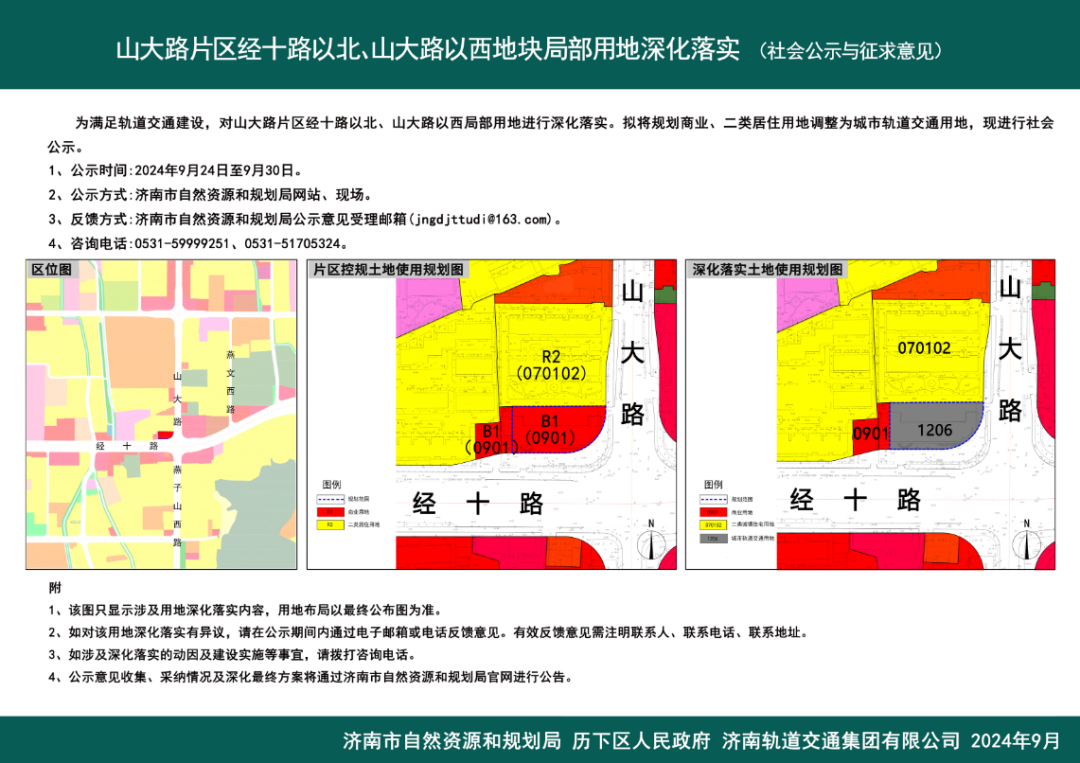 9月24日,济南商埠片区、山大路片区、科技城片区局部用地深化落实面向社会公示并征求意见↓↓↓