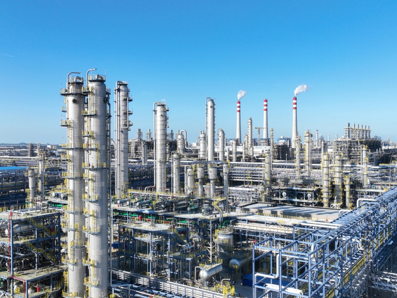 作为山东省新旧动能转换标志性工程项目,项目按照“上大压小、上高压低、上新压旧、上整压散”要求,按照1:1.3比例,压减了2690万吨地炼产能,2.4万多台套设备国产化率达97.96%,实现腾笼换鸟;同时项目采用先进生产工艺和污染治理技术,2000万吨/年炼油配比350万吨/年成品油,油品收率能够控制在18%左右,在国内属于成品油收率最低的,且产成品比例灵活,成品油比例可在18%-40%之间灵活调整;通过调整芳烃原料配比及加氢装置产品收率,柔性调整送往乙烯的原料,化工原料比例可在19%-40%之间调整。
