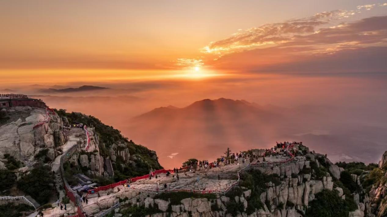 泰山有着壮观的日出和云海。泰山的日出被誉为天下第一奇观,每当清晨时刻,太阳从远方缓缓升起,照亮整个山峰,让人感受到大自然的神奇和壮美;泰山的云海也是一道美丽的风景线,每当雨过天晴,云海在山间翻滚,如梦如幻,让人仿佛置身于人间仙境之中。