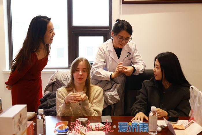 作为“扁鹊故里”,济南中医药文化底蕴深厚,优势明显。活动现场,山东新中鲁中医医院(趵突泉院区)派出专业的医护人员,为国际教育学院的学生们带来了丰富多彩的中医药体验活动。医师们深入浅出地讲解中医药相关知识,内容涵盖其起源、发展和在现代医学里的地位等,结合针灸、推拿等中医药特色疗法展示,借助生动的案例、故事,使学生们能更直观地理解中医阴阳五行、望闻问切等基础理论。此外,医师们还介绍了济南市作为“扁鹊故里”在中医药方面的历史与传承情况,让学生们对扁鹊故里济南的中医药文化底蕴有了更深入的认识。