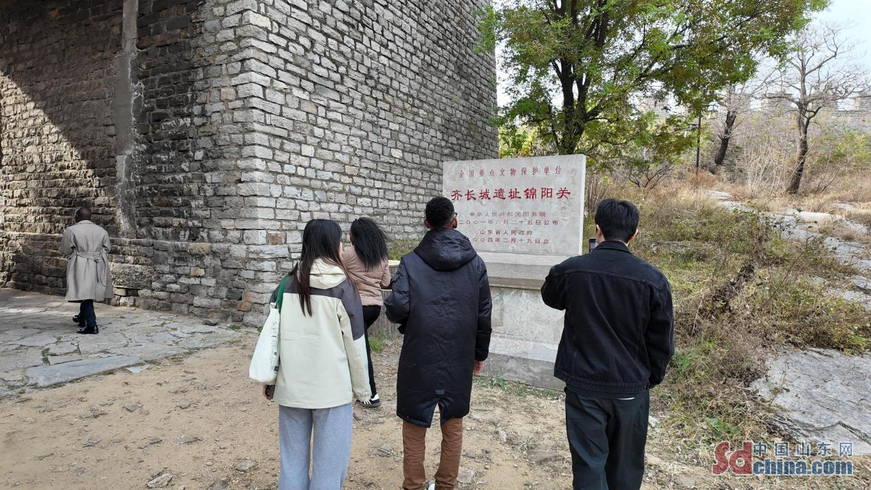 活动首站来到了齐长城锦阳关段。齐长城始建于春秋时期,是中国现存最古老的长城之一。锦阳关,曾名“通齐关”,作为齐长城的三大关隘之一,承载着无数历史的记忆与文化的积淀。国际友人们在工作人员的带领下,沿着齐长城锦阳关段的步道缓缓前行。他们一边欣赏着长城的雄伟壮观,一边聆听长城背后的历史故事,仿佛穿越时空,回到了那个烽火连天的年代。