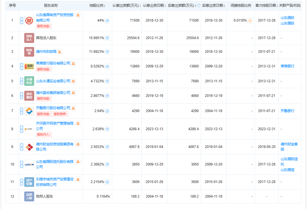 山东省国有资产投资控股有限公司系德州银行股份有限公司最大股东,持股比例44%。