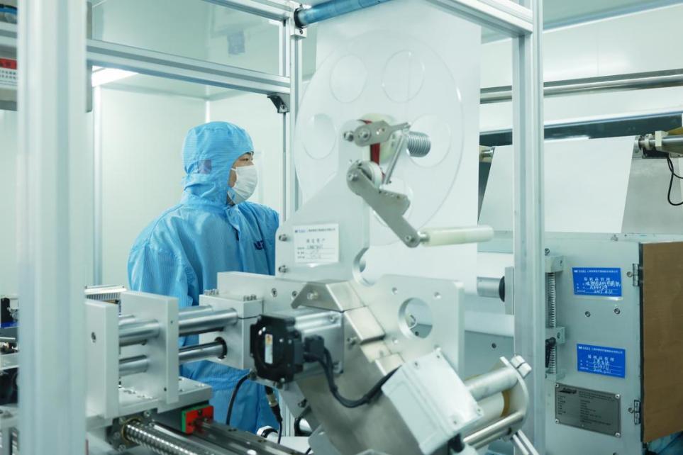 山东瑛盛新材料公司入驻2号厂房,主要从事高端包装材料研发生产,分两期实施,一期年产医用级灭菌包装材料、防护服应用、工业材料印刷与设计类材料等医疗包装材料约1800吨,二期提升高值产品线覆盖,年新增产能1800吨。目前,一期中试线安装已完成,正在优化工艺设备,计划明年7月试生产。