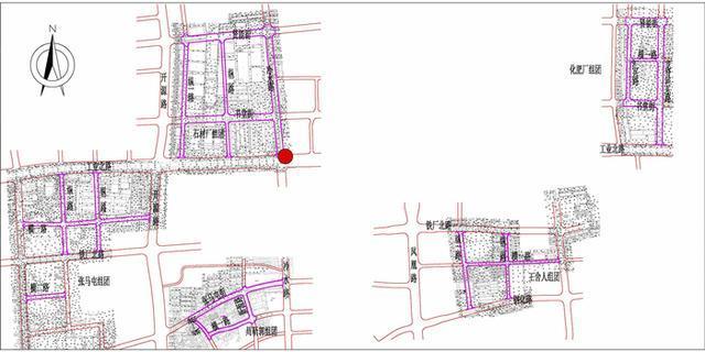 化肥厂组团:贤能街,西起汇兴路,东至龙脊河东路,红线35米,规划为城市次干路,全长171.95米;横一路,西起汇兴路,东至龙脊河东路,红线15米,规划为城市支路,全长174.60米;书堂街,西起汇兴路,东至龙脊河东路,红线35米,规划为城市次干路,全长175.33米;汇兴路,北起贤能街,南至书堂街,红线20米,规划为城市支路,全长447.72米;龙脊河东路,北起贤能街,南至工业北路,红线30米,规划为城市次干路,全长706.24米。