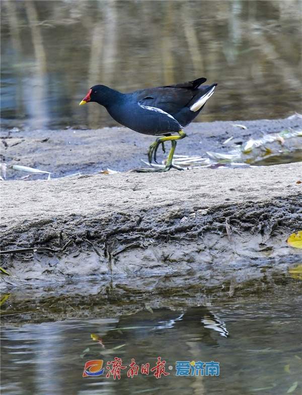 水中珍禽黑水鸡,冬日栖息济南腊山河