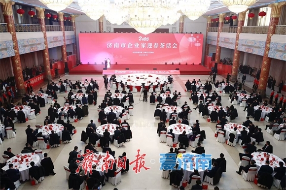 1月12日,2025年济南市企业家迎春茶话会如约而至,180多位企业家、商会会长应邀出席。他们既有驻济央企、省属企业,也有市属企业、驻鲁金融机构,还有外资企业、民营企业、驻济外地商会会长,范围相当之广。