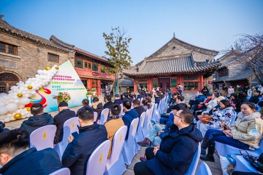 2025 年1月22日,“山东高校美术学院联盟·学生创业就业计划”启动仪式暨礼遇明水文创店开业仪式在明水古城隆重举行。“山东高校美术学院联盟·学生创业就业计划”由明水古城旅游发展有限公司、顶度文化艺术基金会(筹)和山东高校美术学院联盟联合发起,旨在促进高校与地方文化深度融合,为大学生创业就业提供崭新的发展平台,推动地方文化产业与教育创新。本次活动汇聚了政府、企业、高校及各界文化艺术代表,共同见证了“山东高校美术学院联盟·学生创业就业计划”的正式启动。