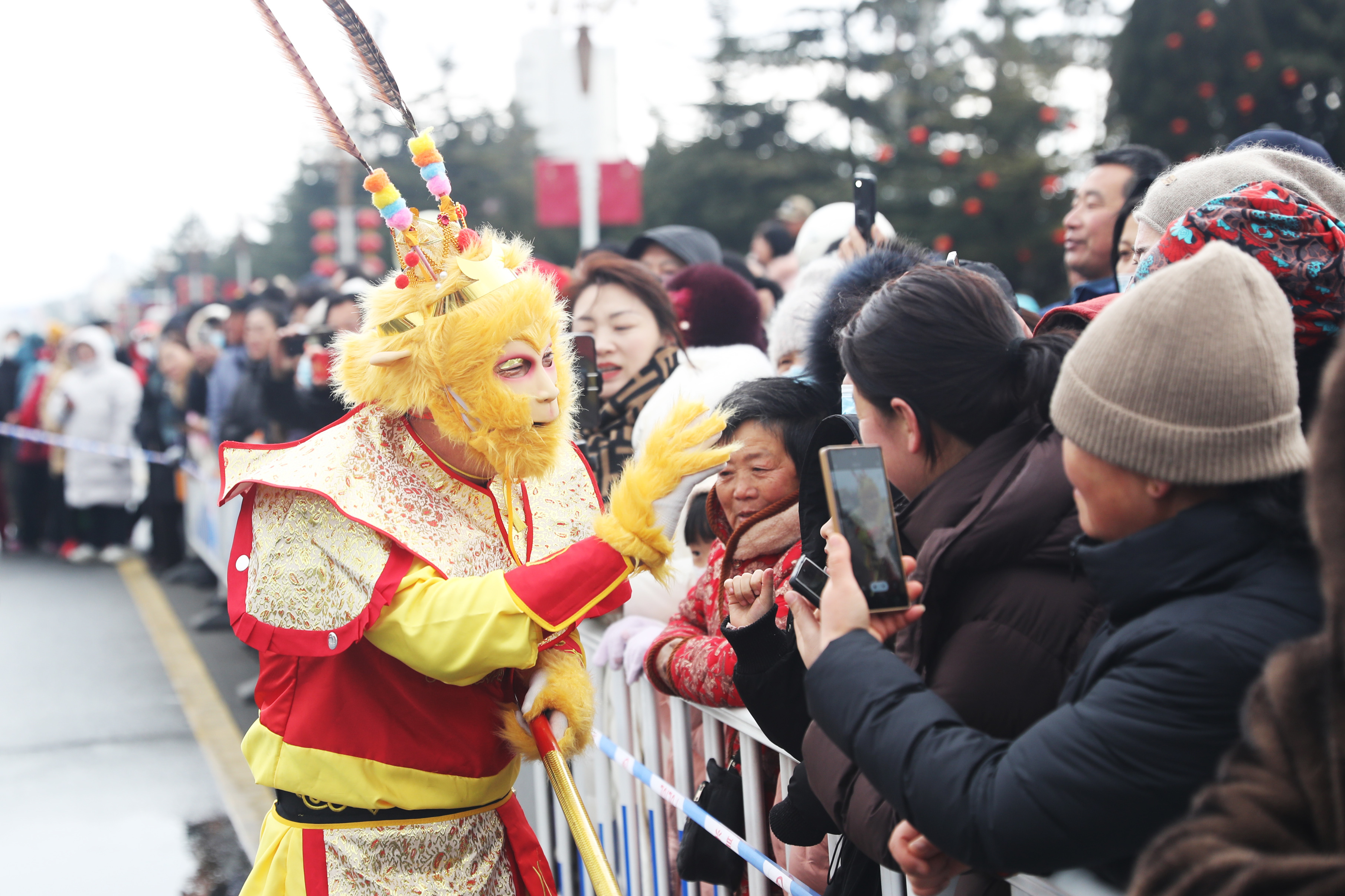 “这才是过年该有的热闹劲儿!”挤在人群前排的市民张建国举着手机全程录像。他七岁的小孙女骑在父亲肩头,学着秧歌队员扭动腰肢,手里的虎头帽随着动作左右摇晃。
