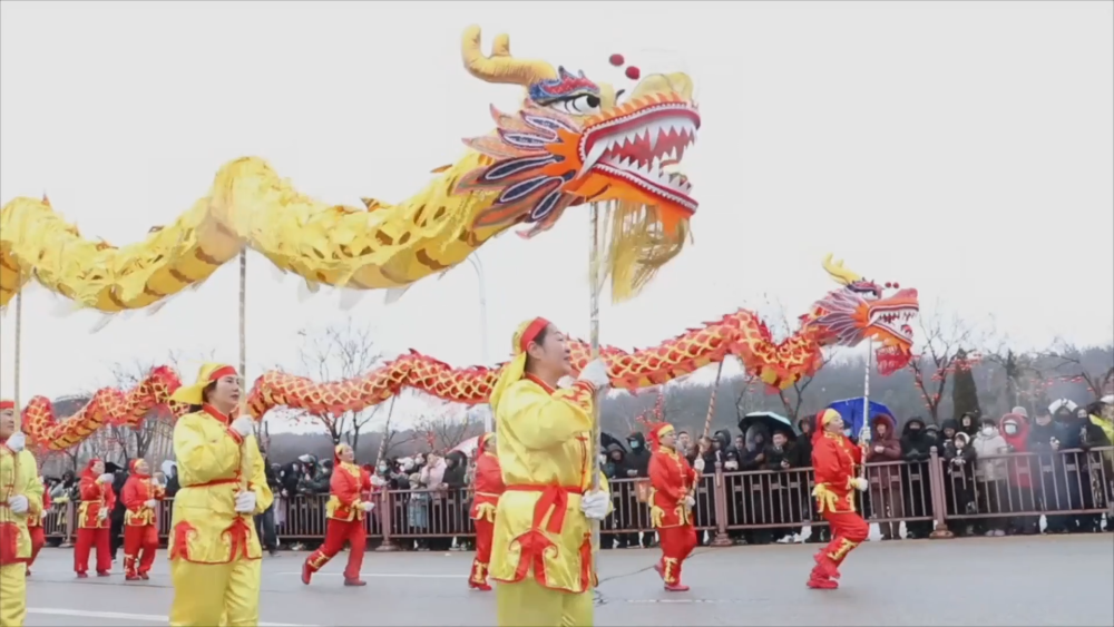 近千名参演人员踏着欢快的鼓点,扭着秧歌、舞动着长龙、划着旱船……他们精彩的表演,充分展现了“文登活报”这一传统民俗文化的独特韵味。