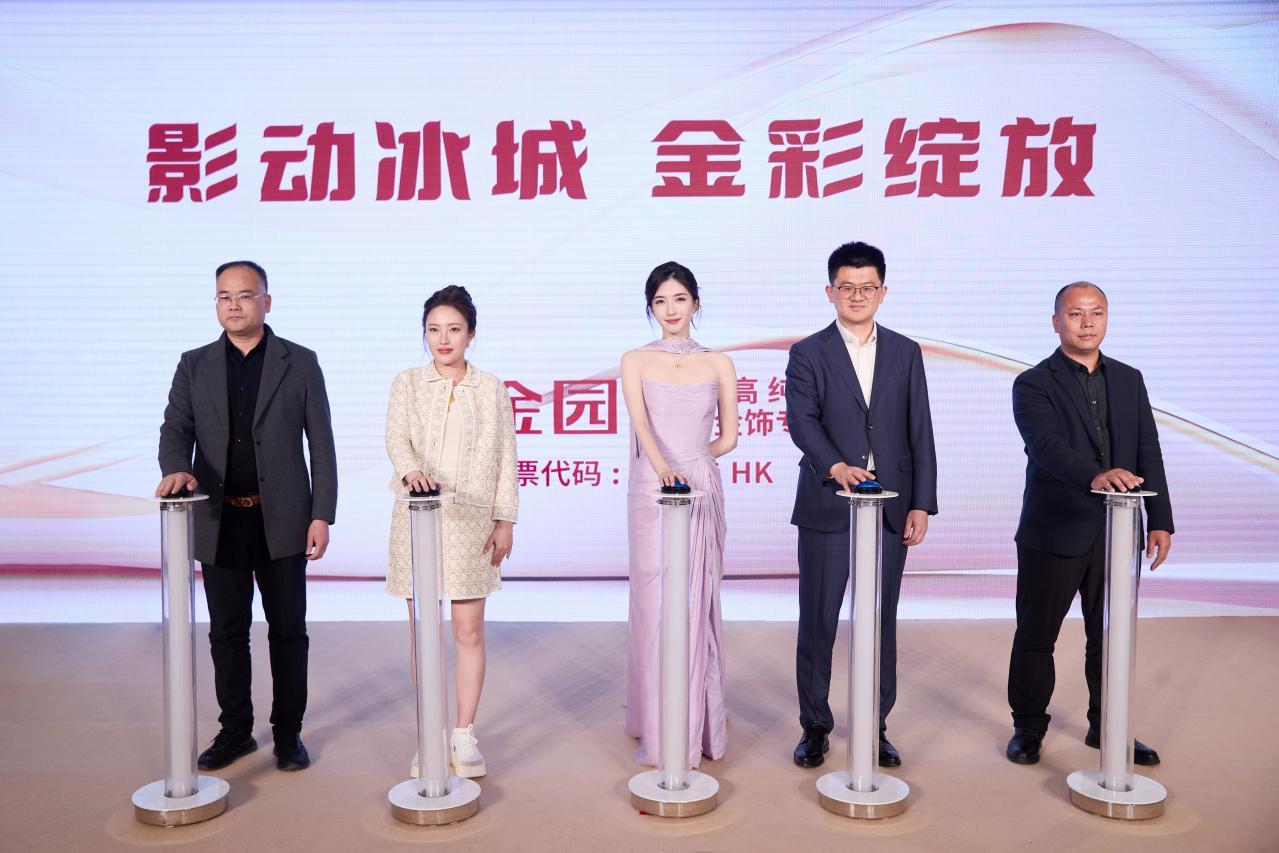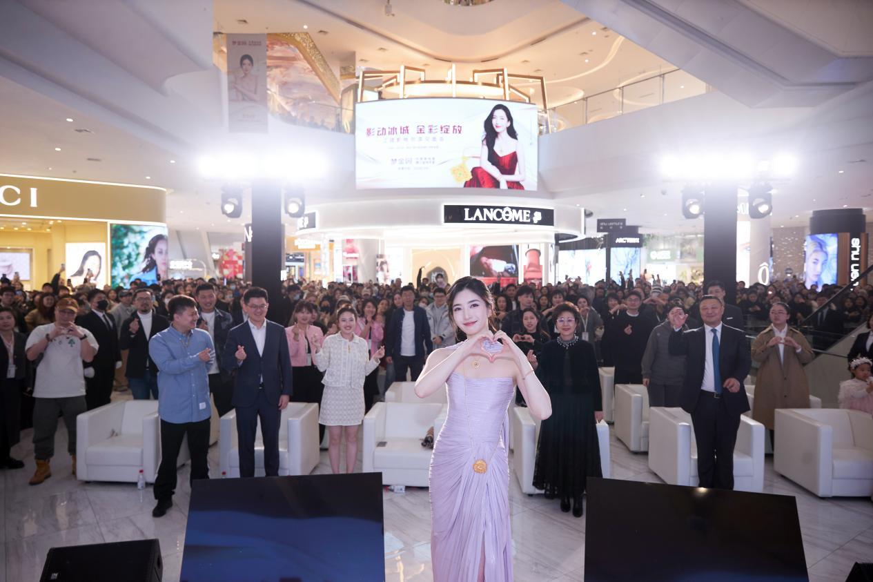 2月22日,梦金园黄金珠宝品牌代言人江疏影一袭淡紫色礼服优雅现身哈尔滨西城红场,与梦金园黄金珠宝集团总经理王国鑫、黑龙江省级服务中心-哈尔滨鑫鹤珠宝总经理杨一鹤等嘉宾一道共同启动“青花古韵系列”尔滨限定款新品首发仪式,同时宣布梦金园金年祈祥博物馆正式开馆。中国纺织工业联合会特邀副会长、红博商业总经理王丽梅女士受邀出席活动。活动以非遗工艺与传统文化为核心,为即将到来的三八国际妇女节献上独具东方美学韵味的艺术盛宴。